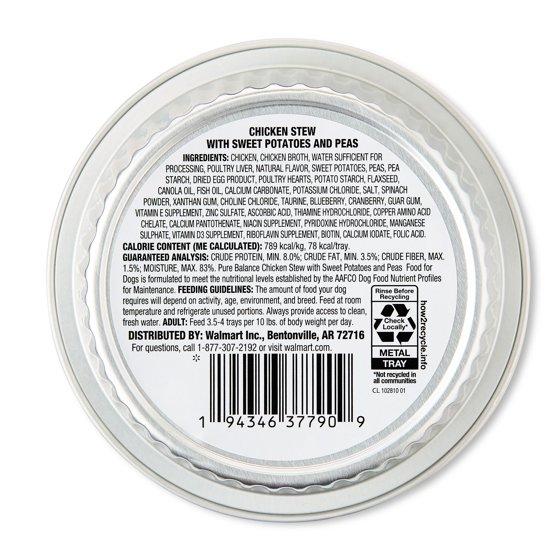 - Pure Balance Chicken Stew with Sweet Potatoes & Peas, Grain-Free Wet Dog Food, 3.5 oz Tray
