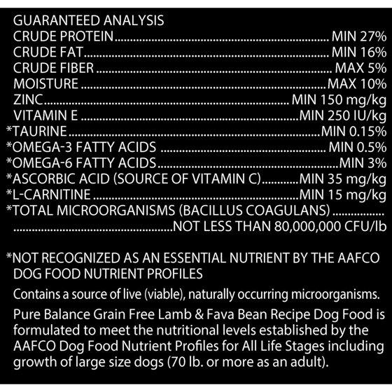 - Pure Balance Grain-Free Lamb and Fava Bean Recipe Dry Dog Food, 11 lbs
