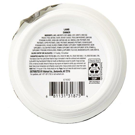 Pure Balance Lamb Dinner Wet Dog Food, Grain Free, 3.5 oz Cup