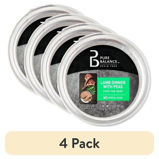 (4 pack) Pure Balance Lamb Dinner with Peas, Grain Free, Wet Dog Food, 3.5 oz Tray