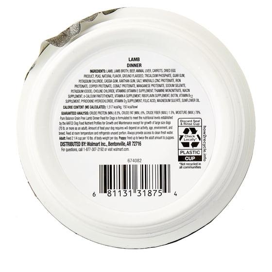(8 pack) Pure Balance Lamb Flavor Pate Wet Dog Food Grain-Free 3.5oz Cup