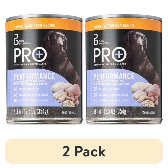 (2 pack) Pure Balance Pro+ Turkey & Chicken Recipe Wet Dog Food for Performance, 12.5 oz Can
