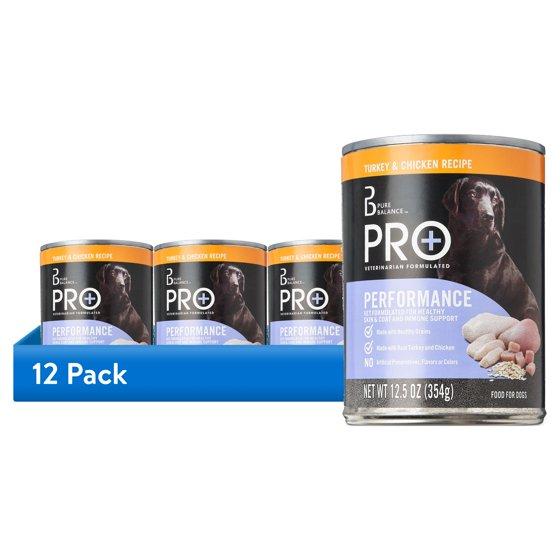 (12 pack) Pure Balance Pro+ Turkey & Chicken Recipe Wet Dog Food for Performance, 12.5 oz Can
