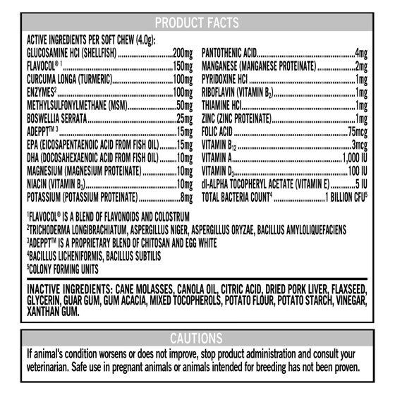 GLUCOSAMINE HCI, FLAVOCOL, TURMERIC, ENZYMES, MSM, BOSWELLA SERRATA, ADEPPT, EPA, DHA, MAGNESIUM (MAGNESIUM PROTEINATE), NIACIN, POTASSIUM, PANTOTHENIC ACID, MANGANESE, PYRIDOXINE, RIBOFLAVIN, THIAMINE HCI, ZINC, FOLIC ACID, VITAMIN B12, VITAMIN A, VITAMIN D, VITAMIN E