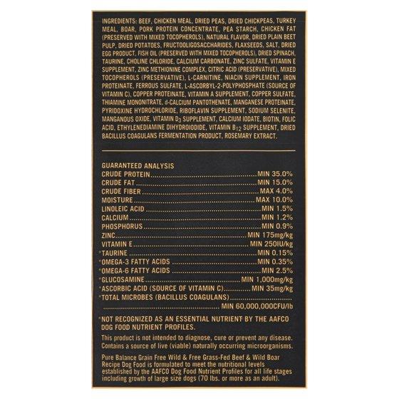 - Pure Balance Wild and Free Grass Fed Beef and Wild Boar Recipe Grain Free Dry Dog Food, 4 lb