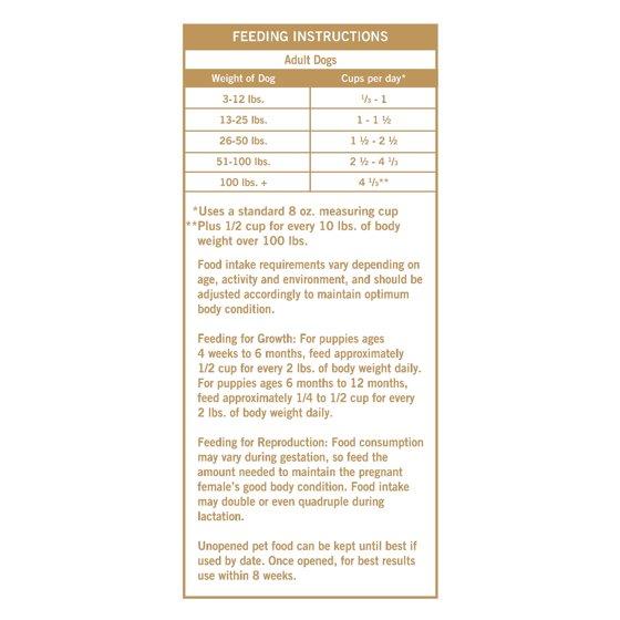- Follow the convenient feeding instructions listed on the back of the packaging to ensure your dog is receiving the appropriate amount for their size during feeding times
