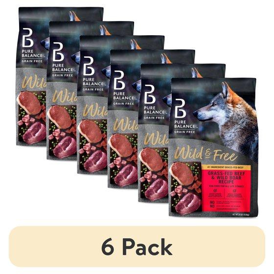 (6 pack) Pure Balance Wild & Free Beef & Wild Boar Recipe Dry Dog Food, Grain-Free, 24 lbs