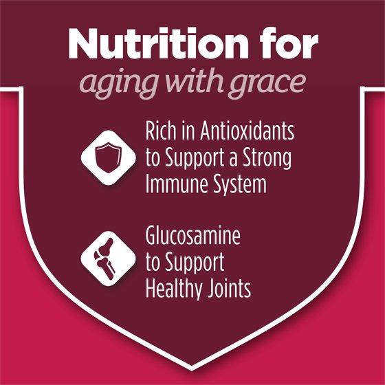 - Purina Cat Chow with glucosamine and antioxidants to support aging joints