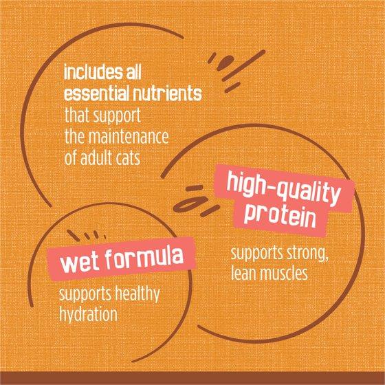 - Moist cat food delivering 100 percent complete and balanced nutrition formulated for adult cats with no artificial colors or preservatives.