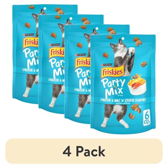 (4 pack) Purina Friskies Party Mix Lobster and Mac 'N' Cheese Flavor Treats for Cats, 6 oz Bag