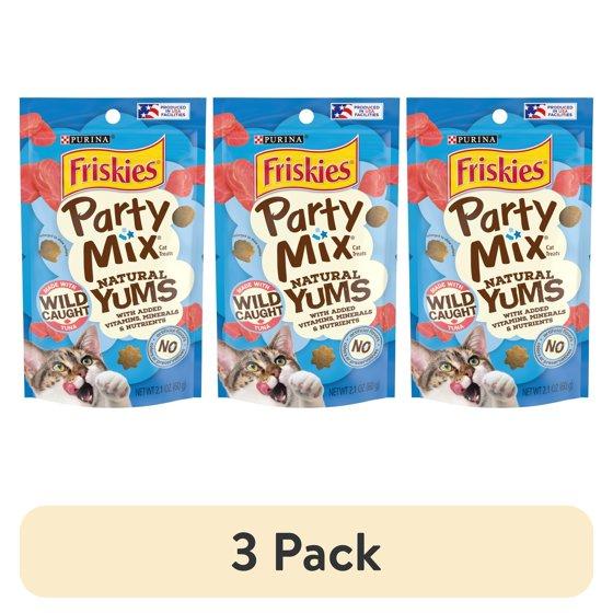 (3 pack) Purina Friskies Party Mix Natural Yums With Wild Tuna Crunchy, Natural Cat Treats