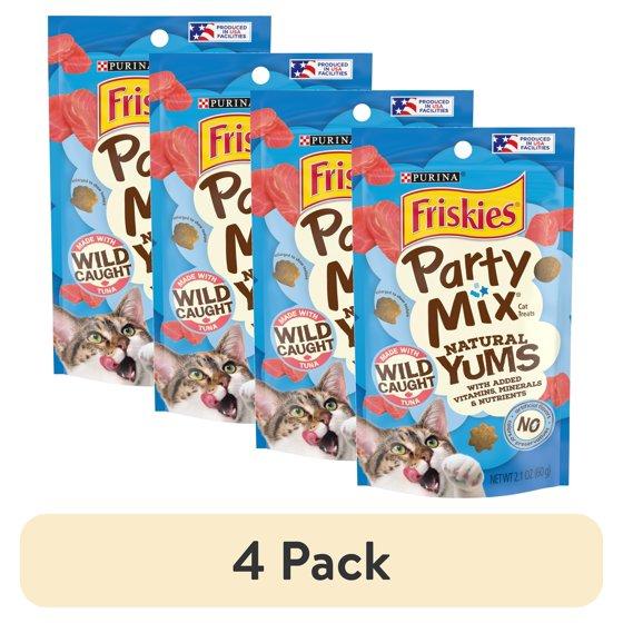 (4 pack) Purina Friskies Party Mix Natural Yums With Wild Tuna Crunchy, Natural Cat Treats