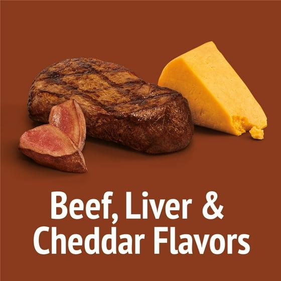- Kitty treats with a trio of beef, liver and cheddar flavors cats can't resist with a crunchy texture that helps keep teeth clean as she chews