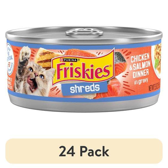 (24 pack) Purina Friskies Shreds, Chicken and Salmon Dinner in Gravy, Wet Cat Food, 5.5 oz Can
