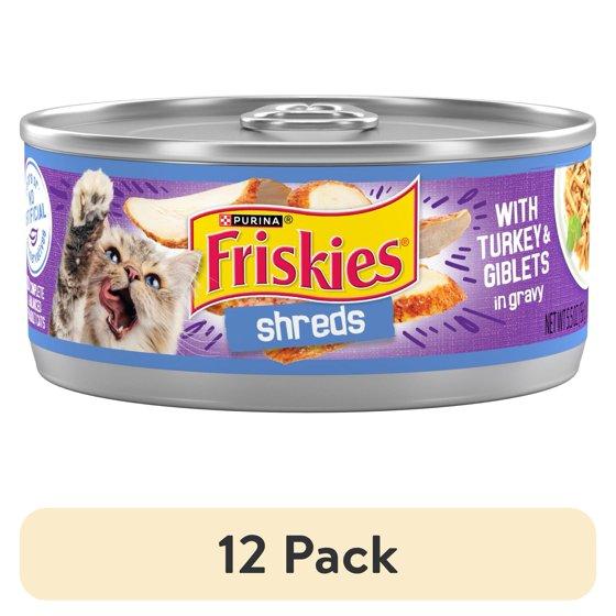 (12 pack) Purina Friskies Shreds Gravy, Soft Turkey and Giblets, Wet Cat Food, 5.5 oz Can