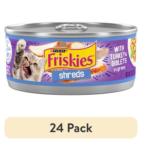 (24 pack) Purina Friskies Shreds Gravy, Soft Turkey and Giblets, Wet Cat Food, 5.5 oz Can