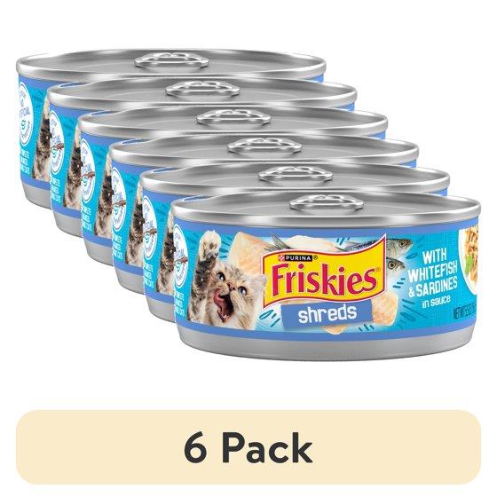 (6 pack) Purina Friskies Shreds, Whitefish and Sardines in Sauce, Wet Cat Food, 5.5 oz Can