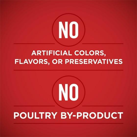 - Purina ONE adult soft dog food is formulated with adult dogs in mind and contains no poultry by-products and no artificial colors, flavors or preservatives