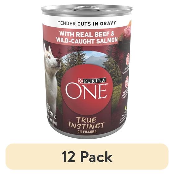 - Purina One True Instinct Tender Cut in Gravy Wet Dog Food Beef Salmon, 13 oz Can