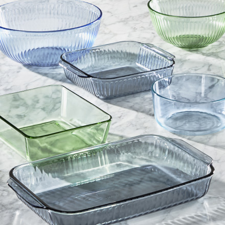 Pyrex Sculpted Tinted Rectangle 9x13 Glass Baking Dish with Airtight Lid, Smoke