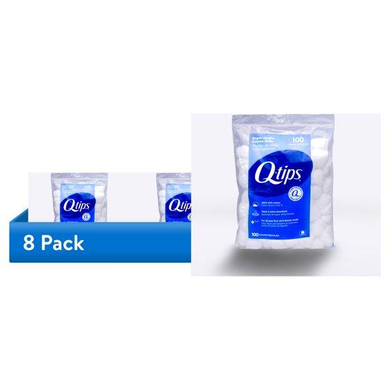 (8 pack) Q-tips Super Jumbo Cotton Balls For Beauty, First Aid And Baby Care, 100% Thick Cotton, 100 Count