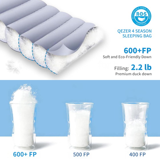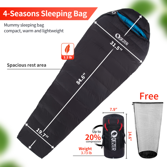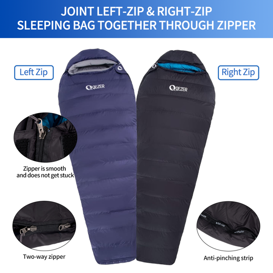 QEZER Down Sleeping Bag for Adults, 10°F Cold Weather Backpacking Sleeping Bag with Compression Sack