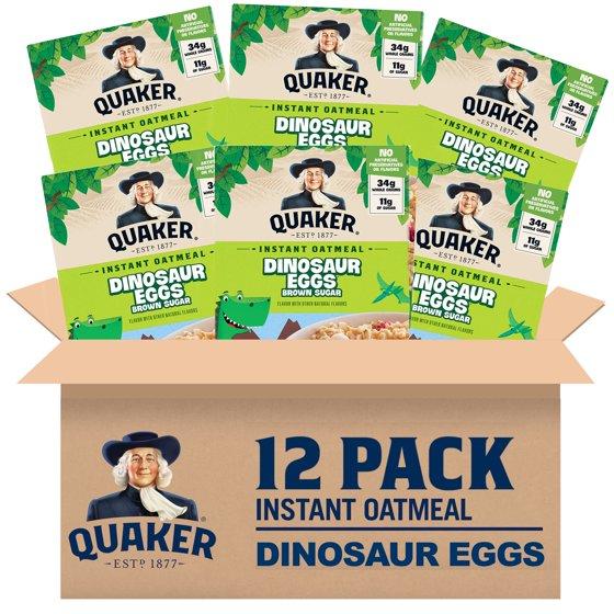(12 pack) Quaker Instant Oatmeal, Dinosaur Eggs & Brown Sugar, 1.76 oz, 8 Packets