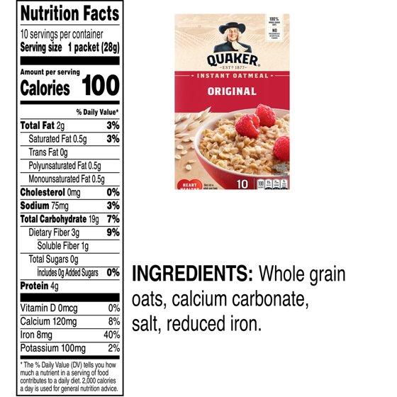 - Good Source of Fiber; Quaker Oats provide a good source of fiber to support a healthy digestive system; See nutrition facts for total fat per serving