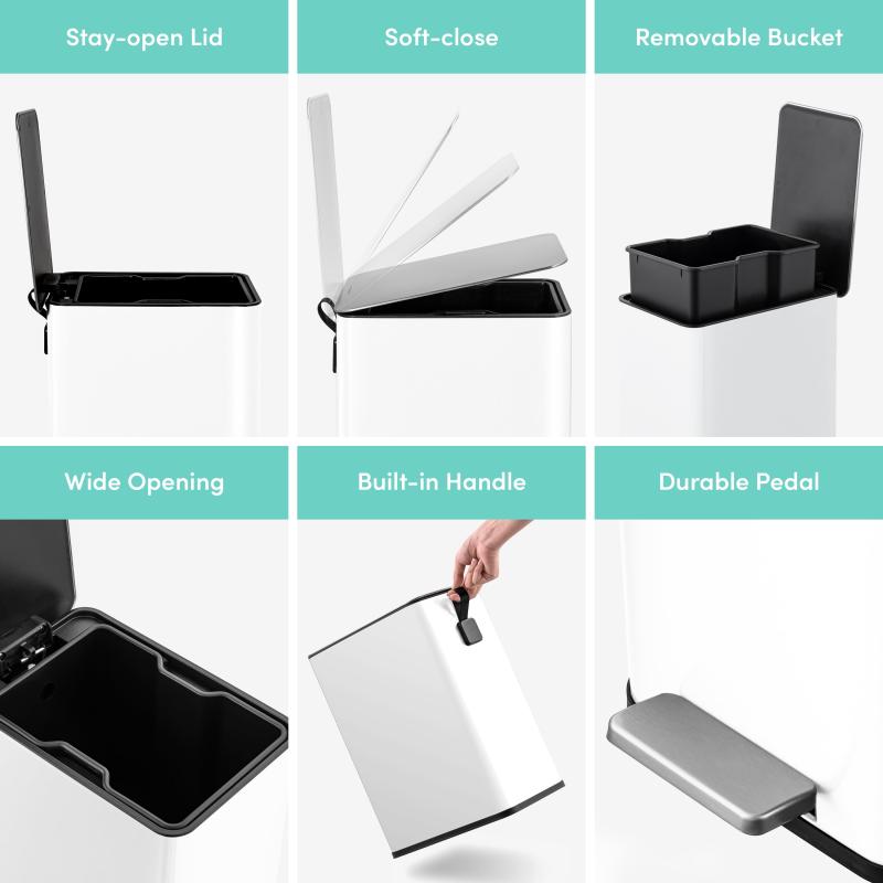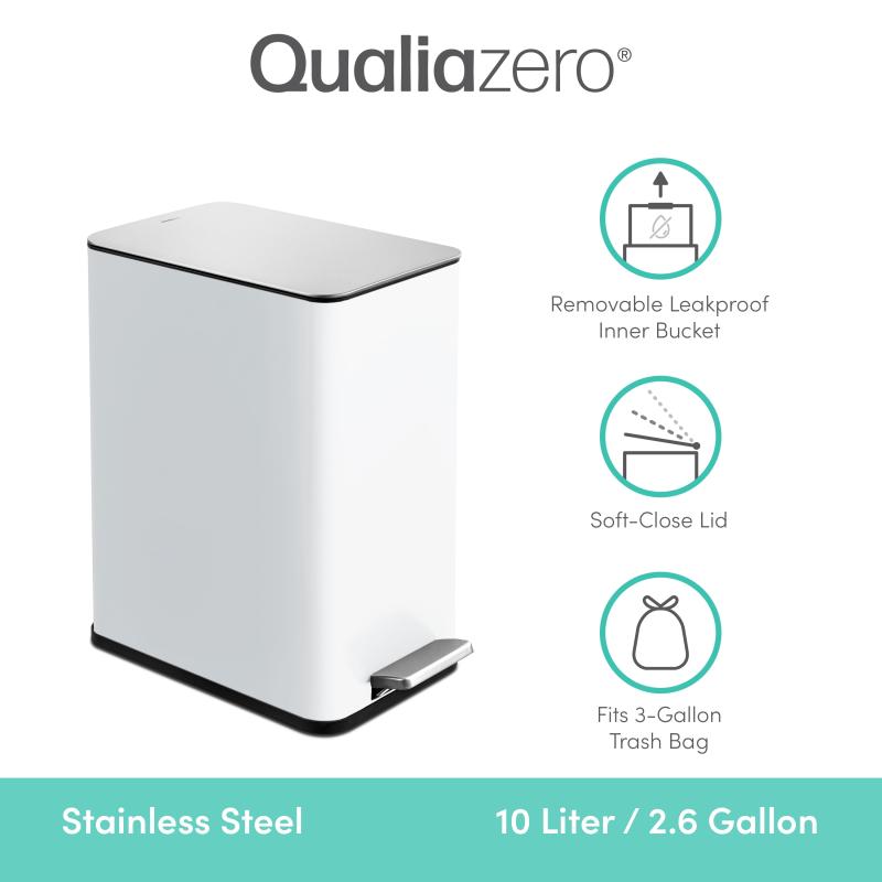 Qualiazero 2.6 Gallon Trash Can, Stainless Steel Step On Bathroom Trash Can, White