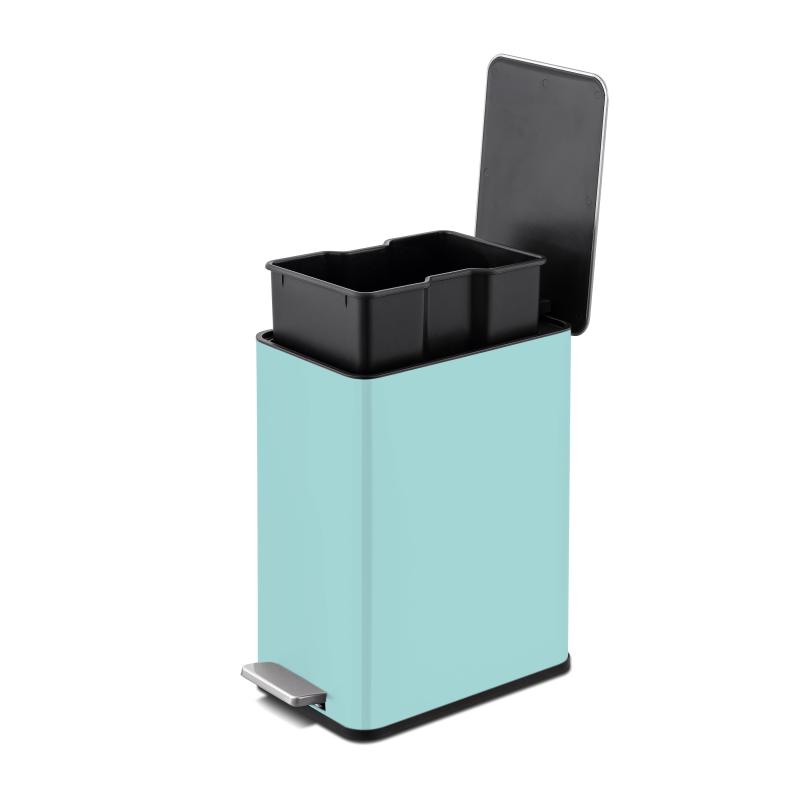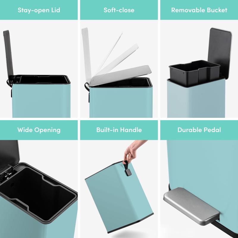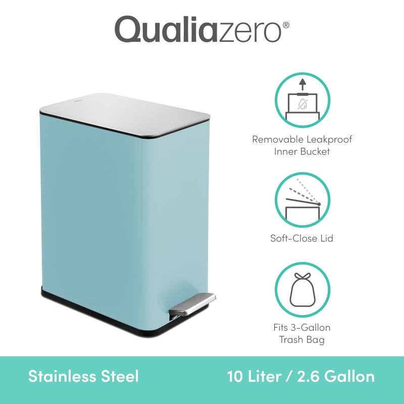 Qualiazero 2.6 Gallon Trash Can, Stainless Steel Step On Bathroom Trash Can, Light Blue