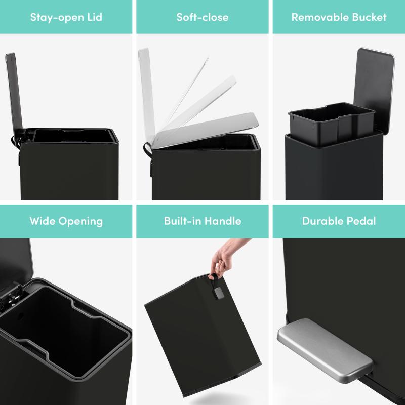 Qualiazero 2.6 gal Stainless Steel Step On Bathroom Trash Can, Black