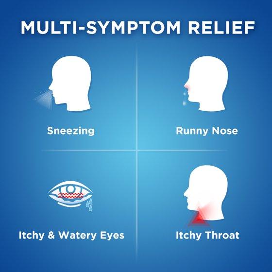 - Relief of sneezing, Itchy watery eyes, Runny Nose, Itchy Throat, Itchy Nose