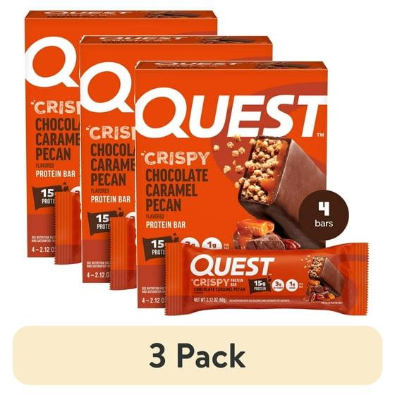 (3 pack) Quest Crispy Hero Protein Bars, Low Carb, Keto Friendly, Chocolate Caramel Pecan, 4 Count