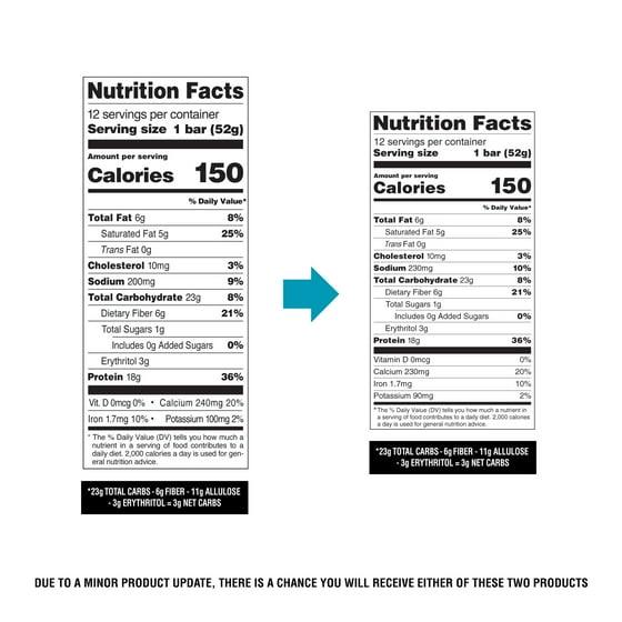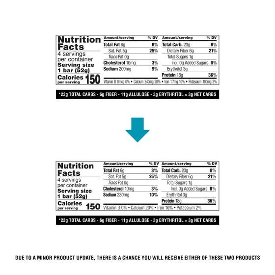 - PROTEIN FORWARD. 18g of protein, 1g of sugar, and 3g of net carbs* per serving. Support your fitness goals and enjoy a crispy, chewy protein bar with the unbeatable flavor combo of cookies & cream.