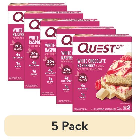 (5 pack) Quest Protein Bar, White Chocolate Raspberry, 20g Protein, Gluten Free, 4 Ct