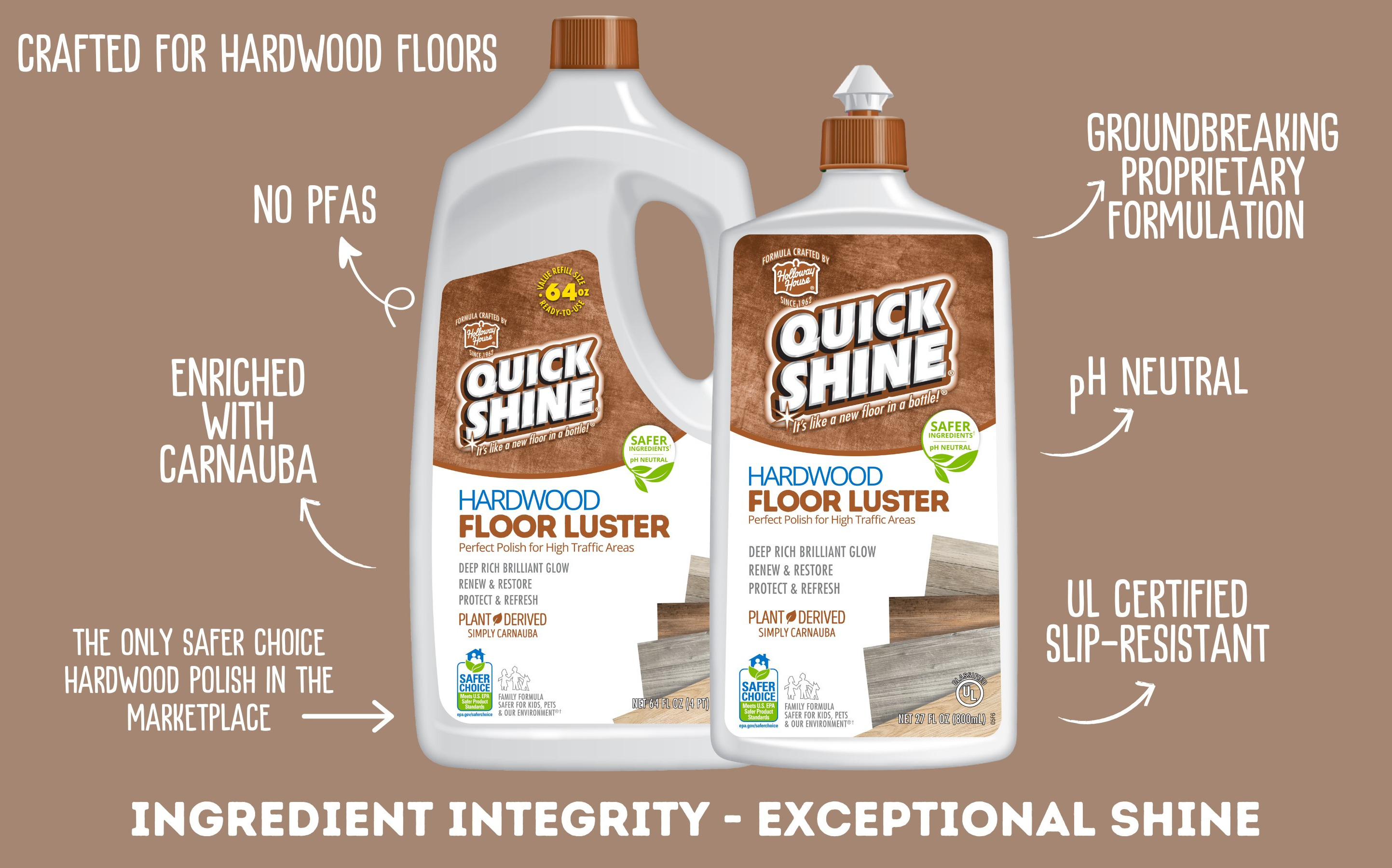 Quick Shine Hardwood Floor Luster, Pfas-Free Formula Floor Polish with Plant-Derived Carnauba 27 fl oz