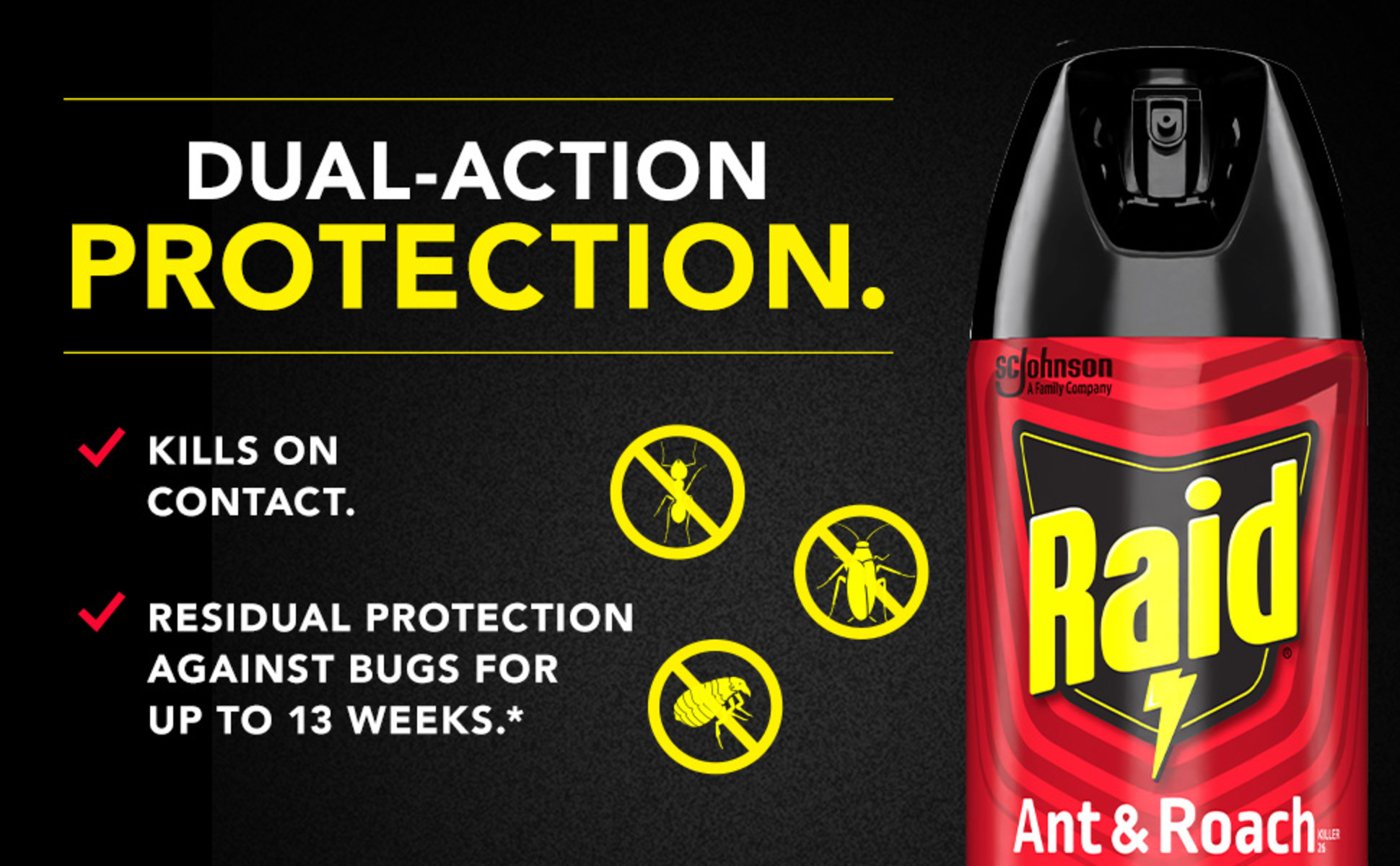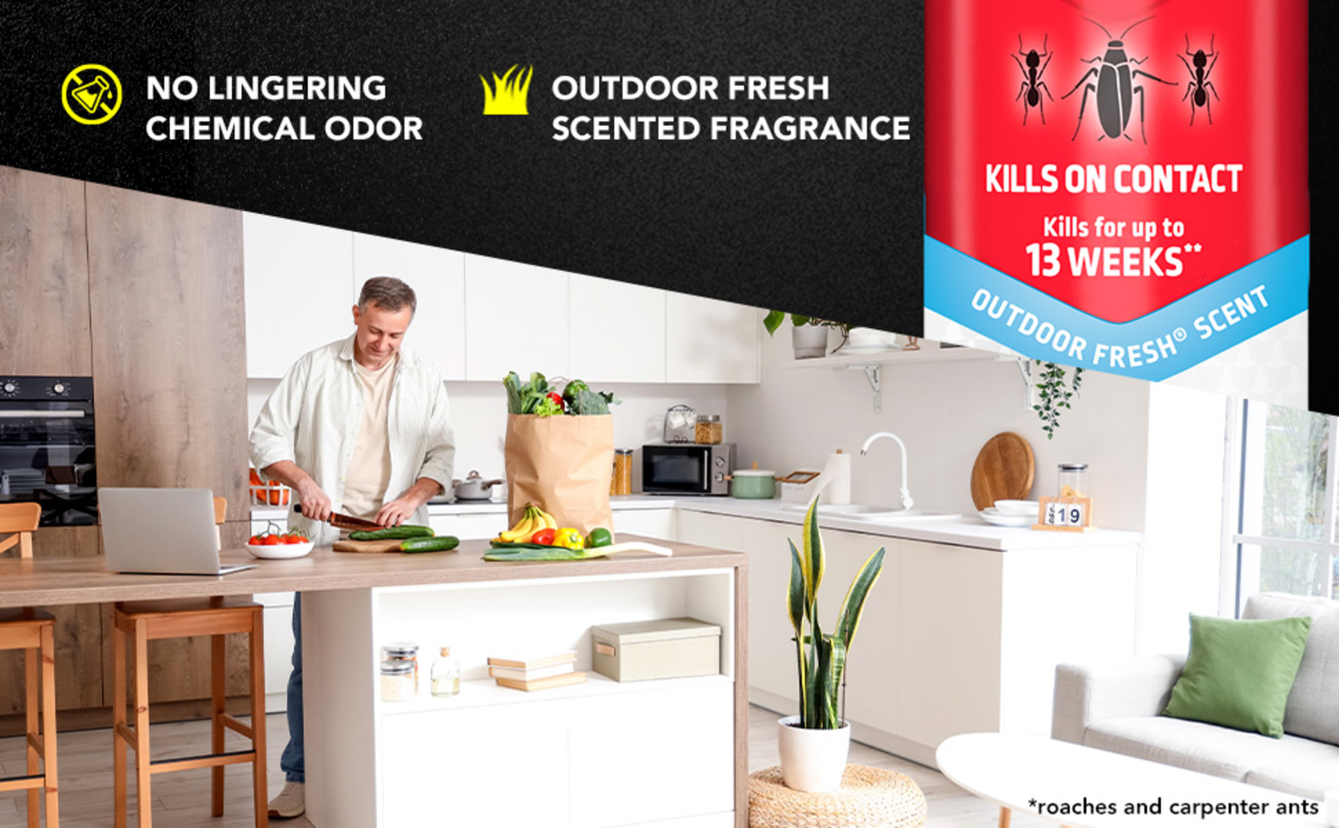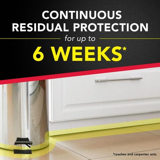KEEP OUT OF REACH OF CHILDREN CAUTION: SEE ADDITIONAL PRECAUTIONARY STATEMENTS ON BACK It is a violation of Federal law to use this product in a manner inconsistent with its labeling. RESTRICTIONS: Do not allow to enter indoor or outdoor drains. No permita la entrada à desagües internos o externos. Follow proper disposal procedures on this label. Siga las indicaciones à etiquetado para el desecho apropiado del producto.FOR INDOOR HOUSEHOLD USE: SHAKE WELL BEFORE EACH USE. Hold container upright. Do not spray up into air. Apply to surfaces only. Point spray opening toward surface to be sprayed and press button firmly. Hold about 18˝ from surface being sprayed. Spray until surfaces are wet. Avoid excessive wetting of asphalt, tile, rubber and plastic materials. More frequent application will be required to maintain control on plywood surfaces. Repeat treatment as necessary. To maintain control of indoor surfaces, retreat every 6 weeks as necessary. Do not apply to humans, pets, plants or contaminate feed, foodstuffs, dishes or utensils. Cover or remove exposed food, dishes, utensils and food handling equipment. During any application to ceilings of a structure, cover surface below with plastic shielding or similar materials. Do not apply this product in a way that will contact any person or pet. Keep people and pets out of the area during application. Exit area immediately and remain outside the treated area until sprays have dried. Remove birds and other pets before application. Cover any water inhabited by fish (such as aquariums and ornamental fish ponds) during treatment, and turn aquarium systems off. Do not use water-based sprays in conduits, motor housing, junction boxes, switch boxes, or other electrical equipment because of possible shock hazard. During any indoor surface application, do not allow dripping or runoff to occur. Do not use as a space spray. Use only in well-ventilated areas. Do not use in greenhouses where plants are grown for food. ROACHES, WATERBUGS, PALMETTO BUGS: Spray until wet in cracks around baseboards and other hiding places. When bugs are driven out, spray directly. ANTS (including CARPENTER ANTS): Apply to ant trails, also around doors, windows and wherever ants enter the house. SILVERFISH, CARPET BEETLES, CRICKETS, EARWIGS, HOUSEHOLD SPIDERS, MULTICOLORED ASIAN LADY BEETLES, STINKBUGS: Spray areas infested by these pests. BLACK WIDOW SPIDERS, SCORPIONS: Must be sprayed directly to be killed.