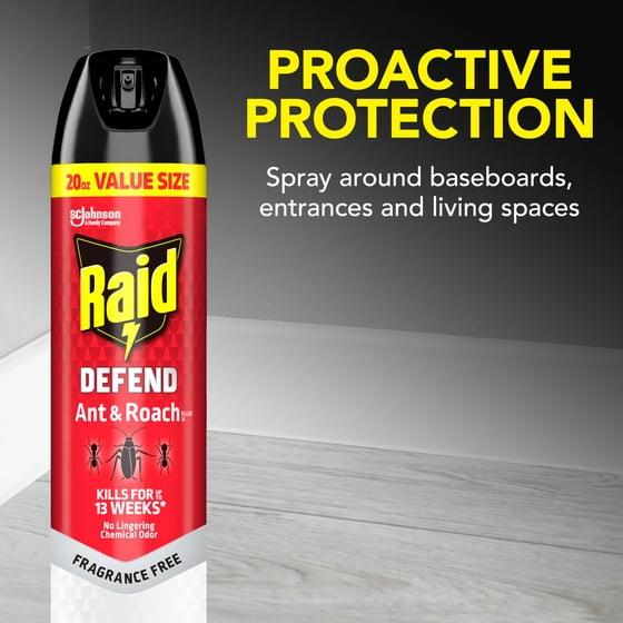 Raid Defend Ant & Roach Killer, Indoor Insecticide, Residual Killing Power, Fragrance Free, 20 oz, 2 Count