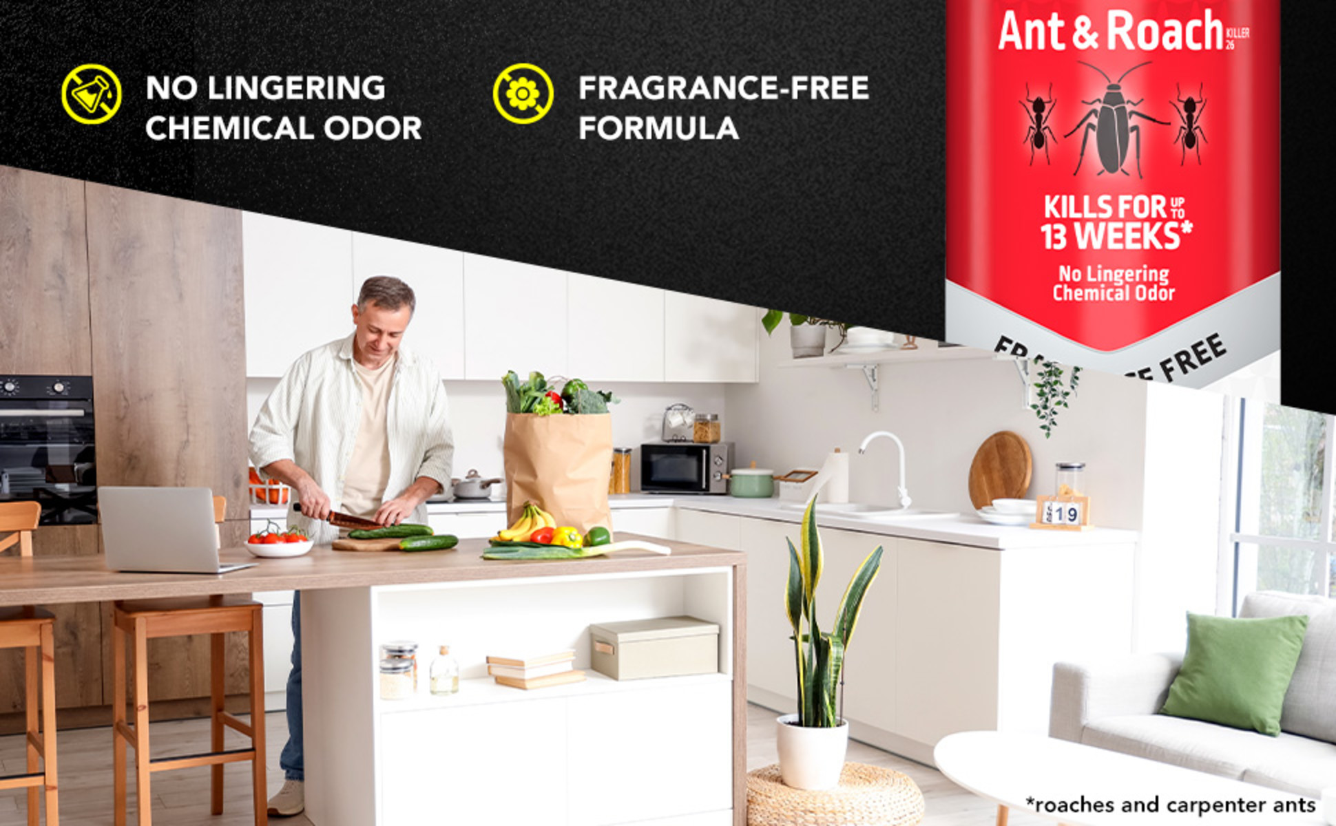 • Ant & Roach spray with no lingering chemical odor