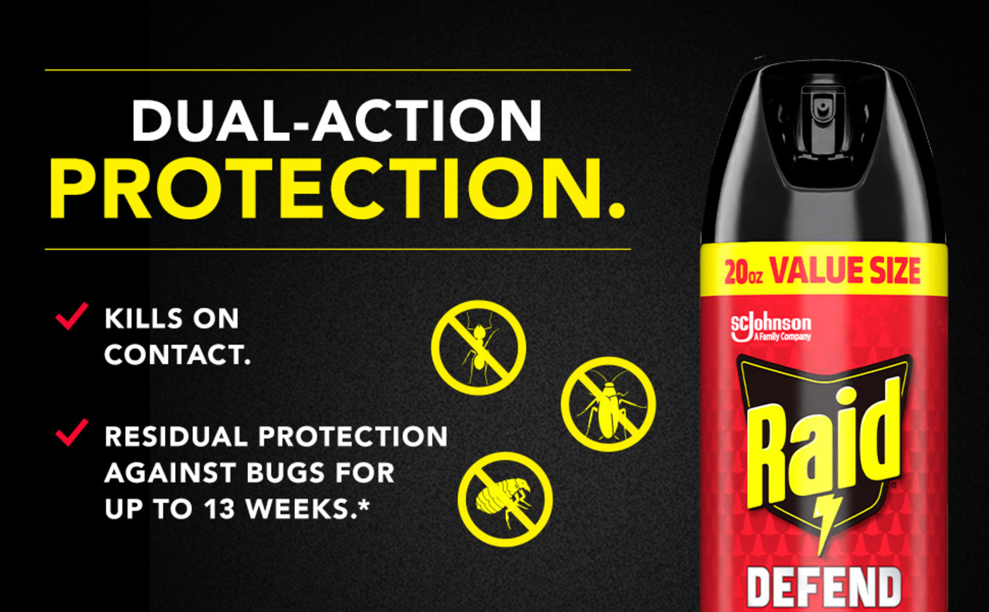 Raid Defend Indoor Ant and Roach Killer Spray Value Size, Raid Ant Roach Killer has a special formula that kills on contact and keeps killing with residual action for up to 4 weeks, Roaches and Carpenter ants. Take back your space with this easy-to-use Raid Ant and Roach spray. It can be applied to surfaces where ants, roaches, and other listed bugs may be infesting. Kills a wide variety of insects including roaches, ants, silverfish, crickets, earwigs, household spiders, multicolored Asian lady beetles, stink bugs, scorpions, and black widow spiders. Raid Fragrance-Free leaves no lingering chemical odor.