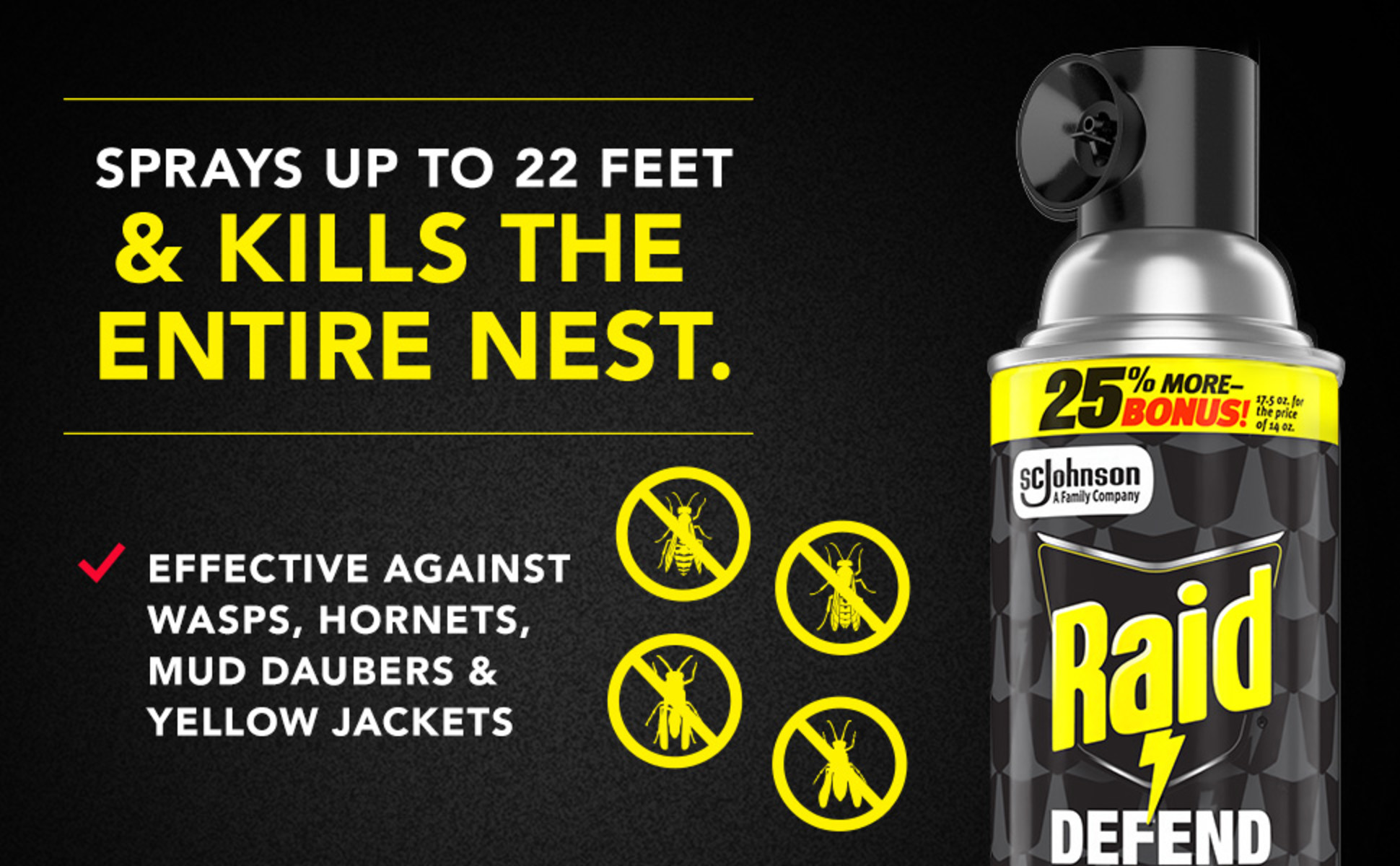 Raid Defend Outdoor Defense System Wasp and Hornet Bug Spray, Insect Killer, 17.5 oz