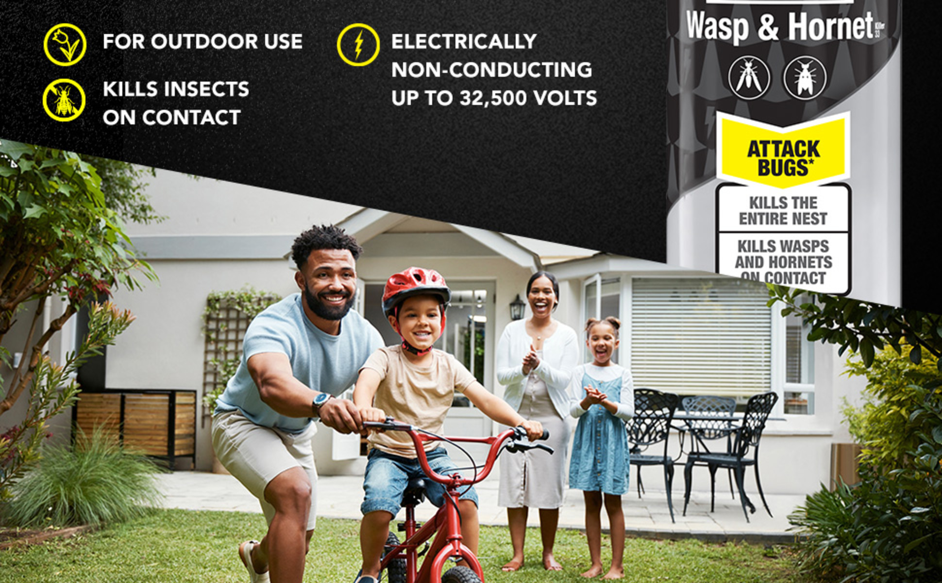 - Wasp killer and hornet killer sprays up to 22 feet