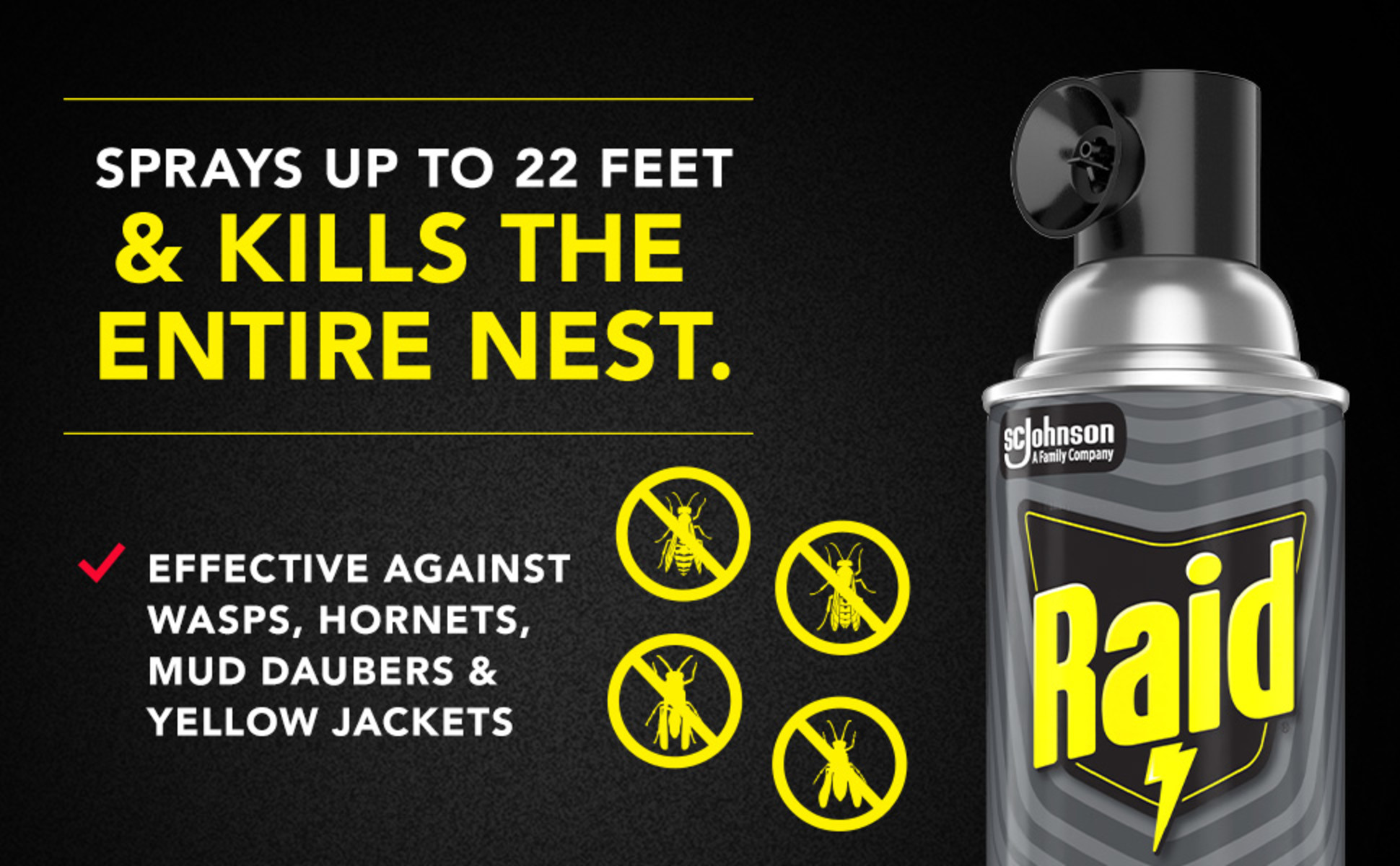 It is a violation of Federal law to use this product in a manner inconsistent with its labeling. Do not use this product in a way that will contact any person or pet, either directly or through drift. Keep people and pets out of area during application. Exit area immediately and remain outside the treated area until all sprays have dried. FOR OUTDOOR USE: To kill paper wasps, yellow jackets, mud daubers, and bald-faced hornets: For best results, spray in early morning or early evening when insect activity is minimal. Stand a safe distance from nest and not directly underneath. Hold can as upright as possible while spraying. Point spray opening toward nest with wind at your back. Spray until nest is thoroughly saturated to kill the entire nest population. Wait at least 24 hours before removing the nest. Remove all exposed food and cooking utensils. Cover all food handling surfaces or wash thoroughly after treatment and before use. Do not use on edible crops. Do not apply to pets or contaminate feed, foodstuffs, dishes or utensils. Avoid spraying vegetation directly. Avoid excessive wetting of asphalt. Application is prohibited directly to sewers or drains, or to any area like a gutter where drainage to sewers, storm drains, water bodies or aquatic habitat can occur. Do not allow the product to enter any drain during or after application.