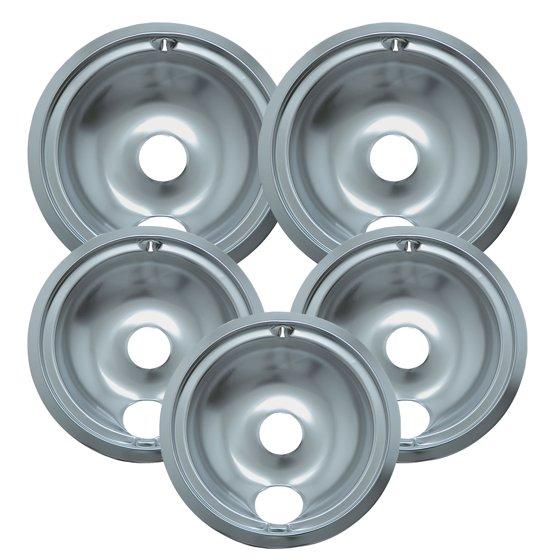 - Includes 3 small and 2 large chrome plated drip bowls for a total of 5 pieces