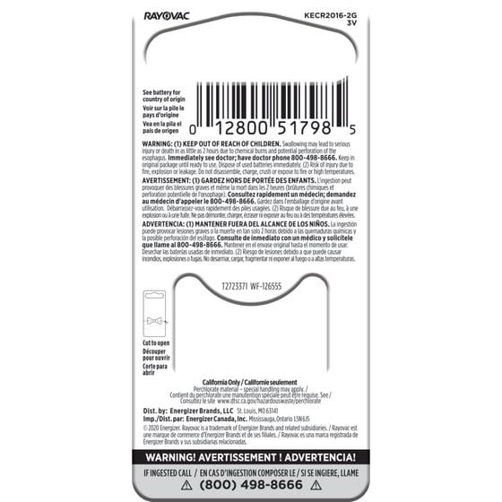 • Rayovac CR2016 3 Volt Electronic Batteries Provide Excellent Performance and Value For Specialty Devices