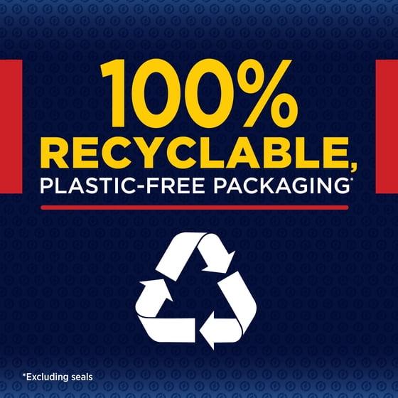 - Select packs feature 100% recyclable, plastic-free packaging (excluding seals)