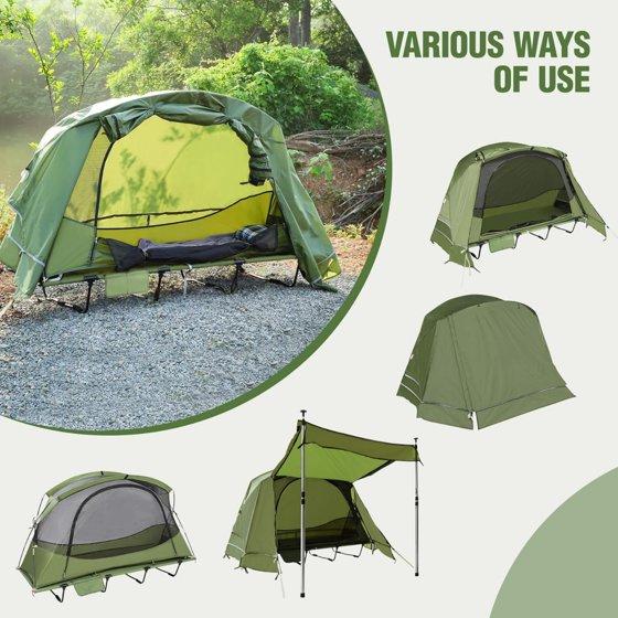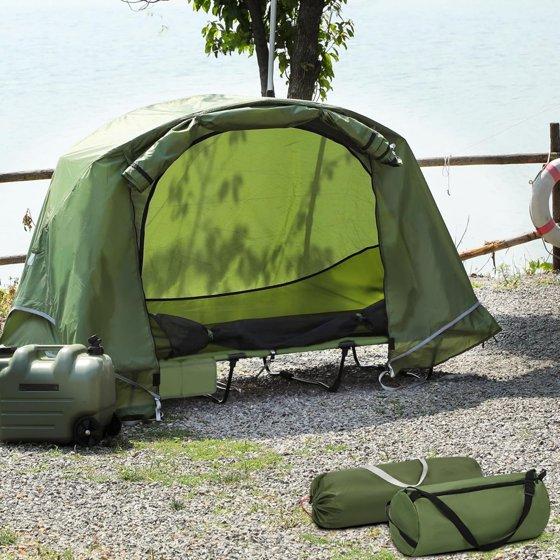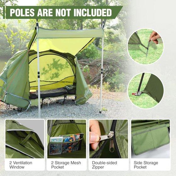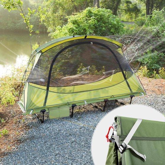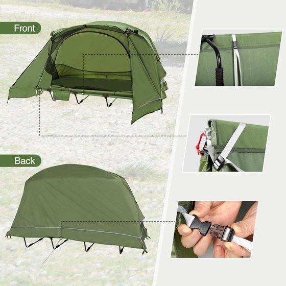 - Convenient Details: Coming from see-through windows on both sides of outer flysheet, which is convenient to keep the air circulate. The design of double-sided zipper is convenient to open or close the tent door inside and outside. Camping cot and tent have extra storage pockets for easy storage.