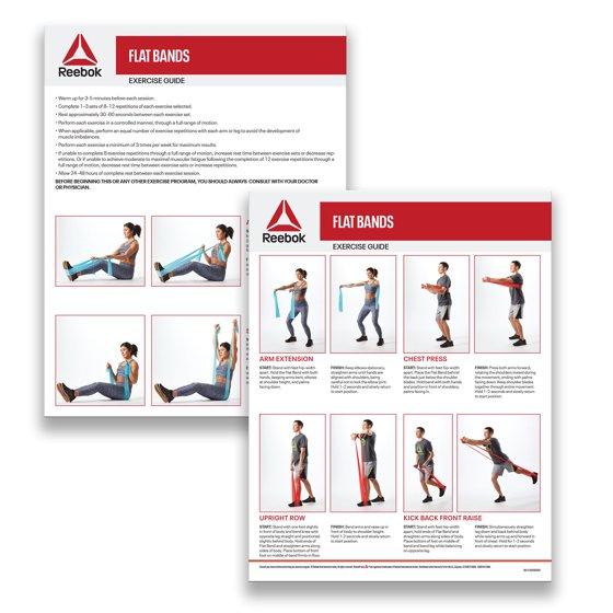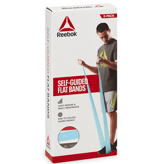 - Includes: Reebok Flat Resistance Bands 3-Pack, Set of Three Exercise Bands, and Workout Guide