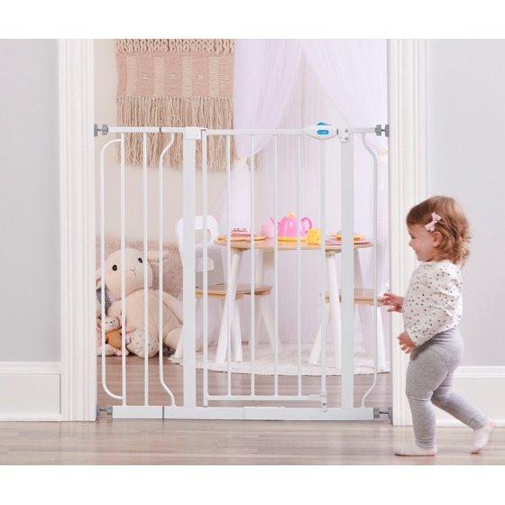 Your baby took their first steps, now they are off and exploring their new world. It's time to childproof your home. A baby gate is an essential tool for protecting your child, especially if they like to climb. The Regalo Extra Tall Assembly Baby Gate provides the security you can rely on for those moments when you can't be in arms reach of your little one. The all-metal construction of the baby gate provides parents with peace of mind that it will hold up to the everyday use of your curious toddler. The adjustable nature of the gate provides convenience accommodating door openings between 29-38.5". We know gate installation is important. It needs to be safe, yet quick. To make installation hassle-free, pressure mounts the gate with the included rubberized tension knobs or use the included hardware to attach the gate to your wall.