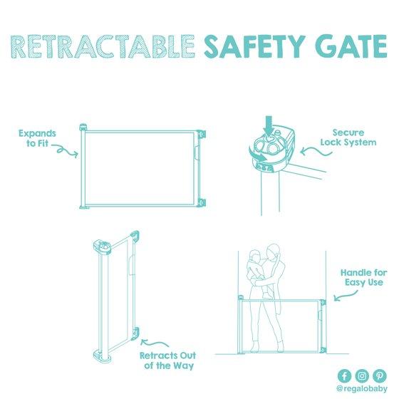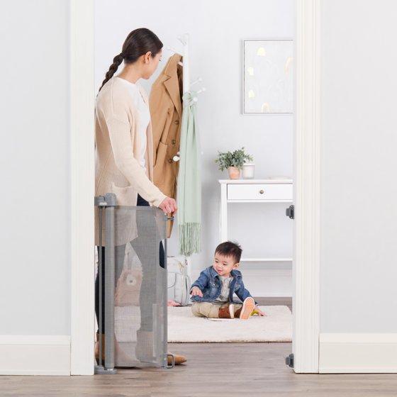 - HIGH-QUALITY MESH: Made of durable, high-quality mesh, this retractable gate slides smoothly and retracts when not in use to help keep your space open.